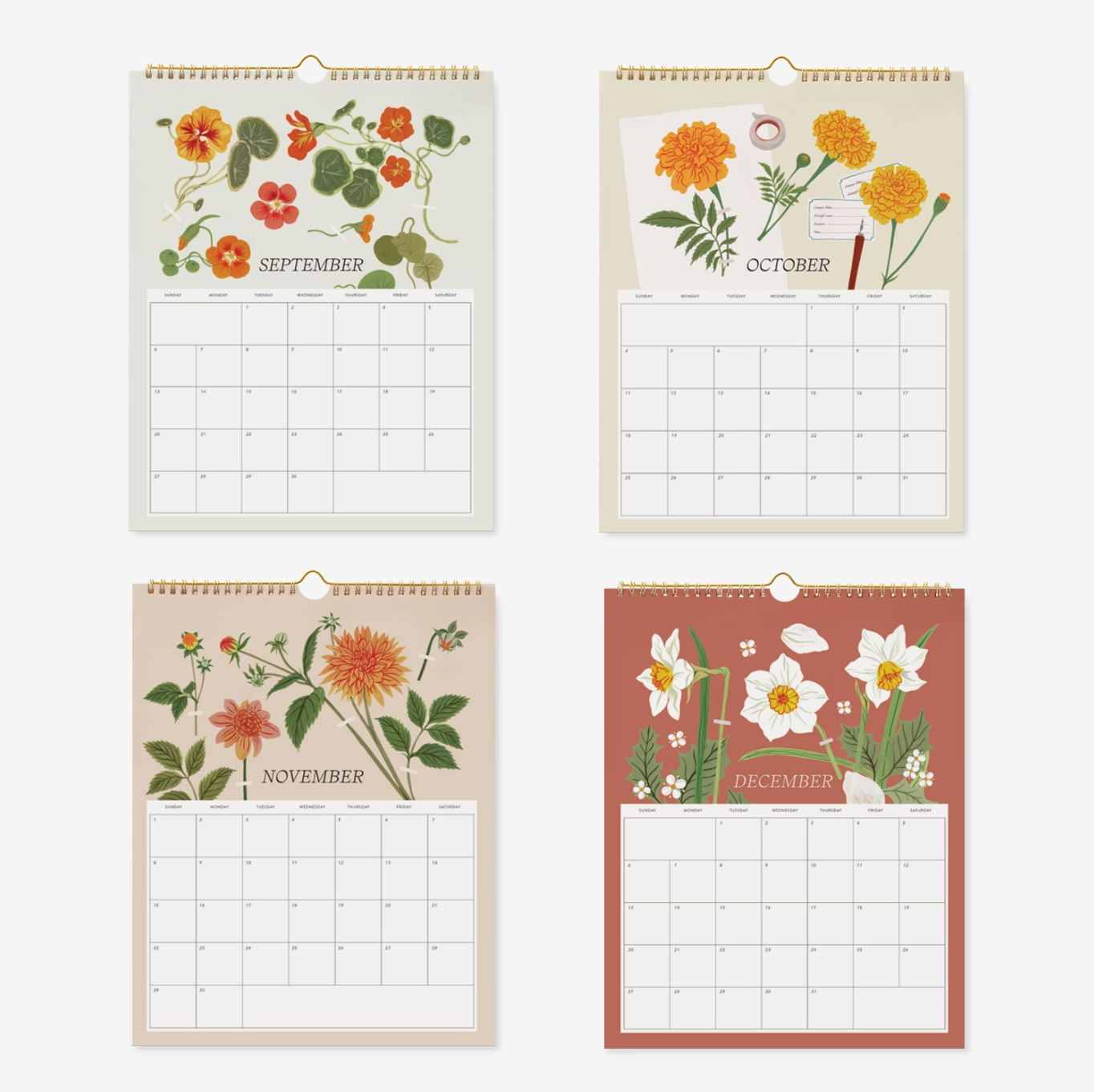 Each month features a hand-painted illustration of pressed flowers, printed on warm-white, high-quality stock. Designed with both form and function in mind—there’s plenty of space to jot down appointments and reminders, and the sturdy double spiral binding with center notch makes it a breeze to hang.