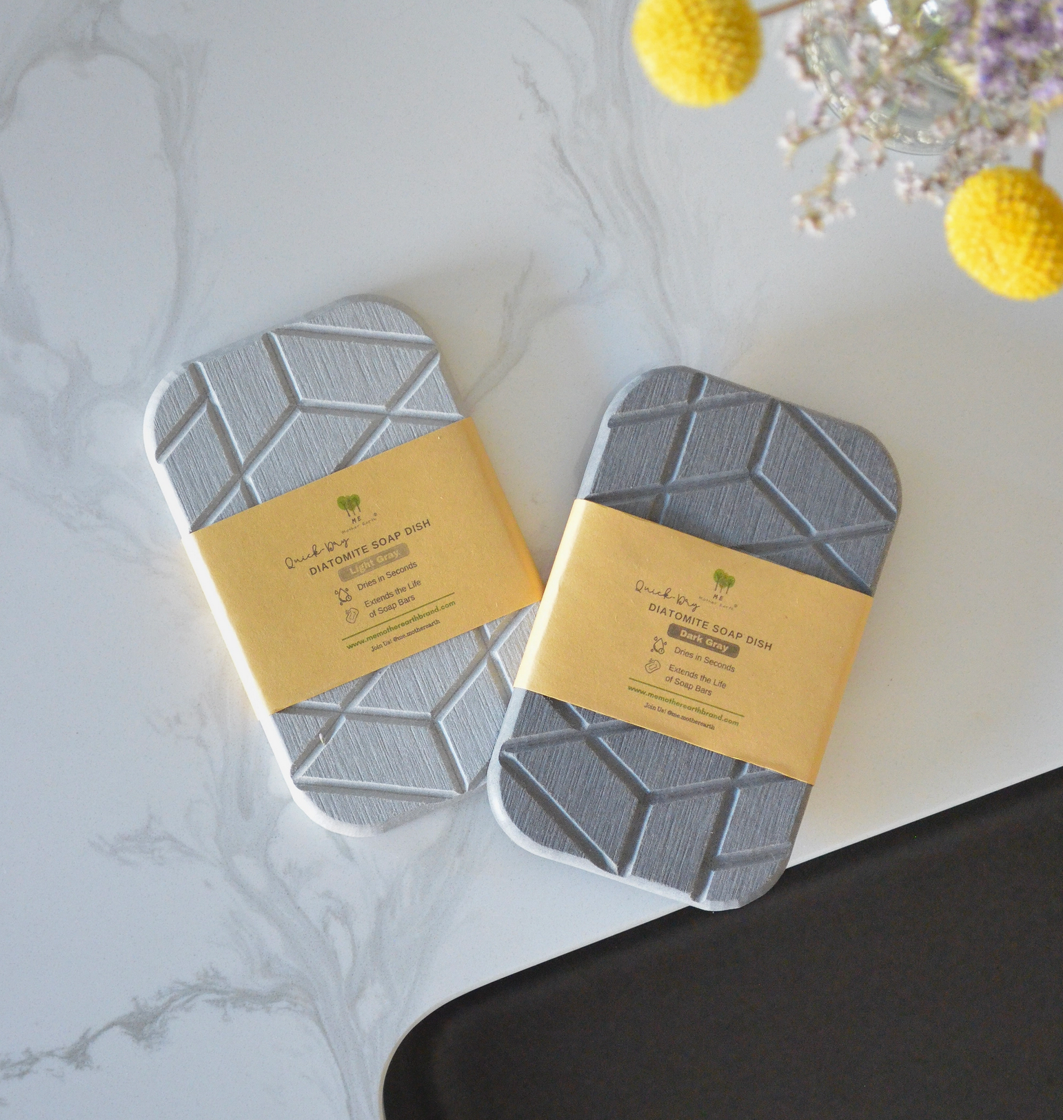 These soap dishes are made from diatomaceous clay (sand derived from fossilized algae); a completely renewable and natural resource. These quick drying stone soap dishes can absorb 150% of its weight in moisture, dry in a matter of seconds, and prevent microbial growth.