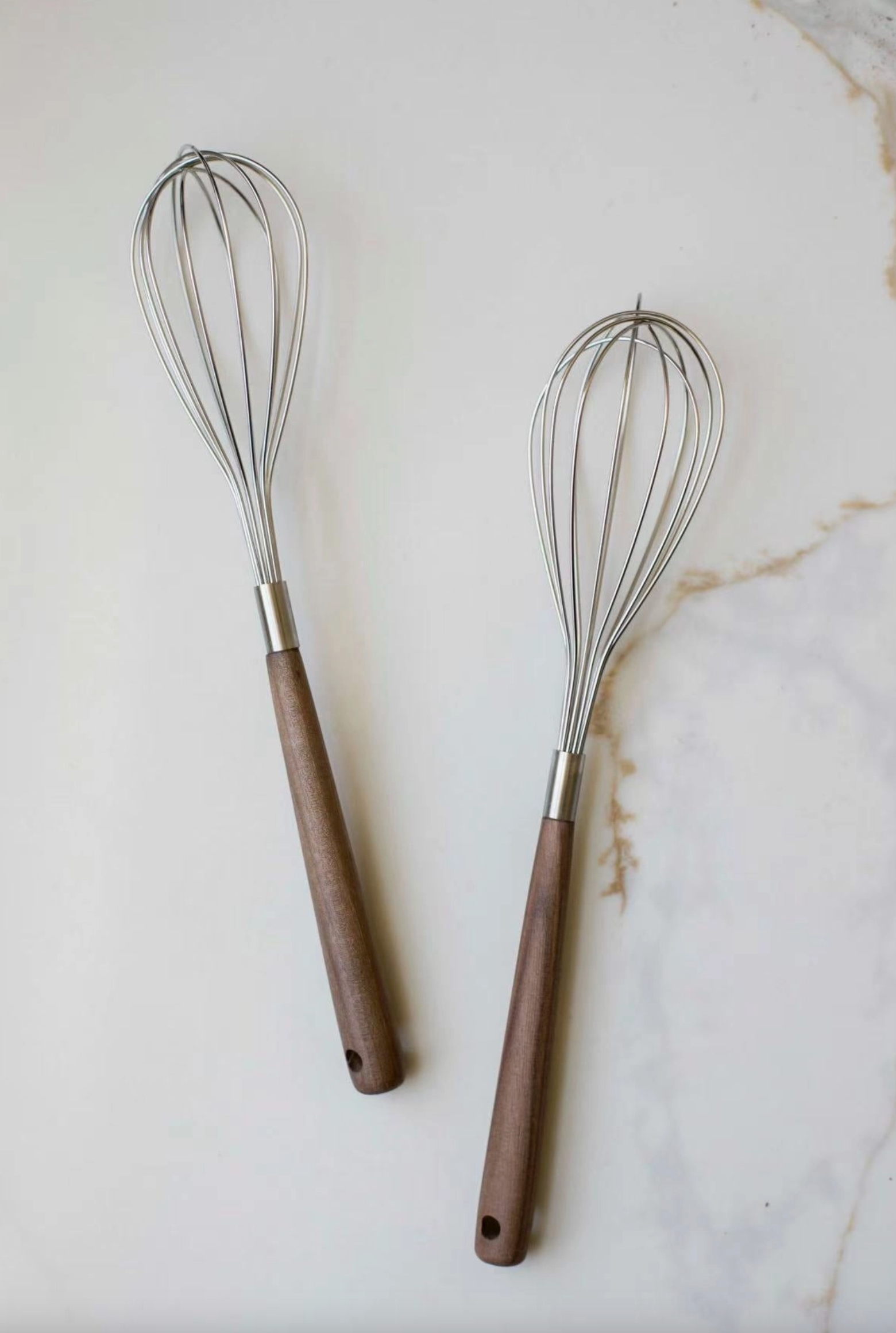 This whisk consists of flexible stainless - steel wires, allowing for quick and effective whisking of eggs, cream, or sauces. The wooden handle provides a non - slip grip during operation.