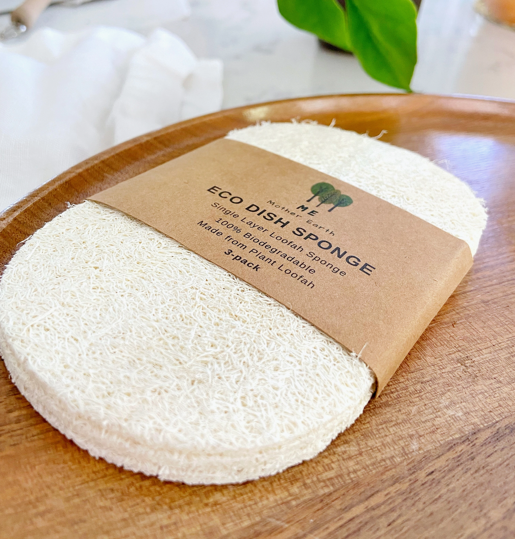 Our 100% biodegradable Loofah Dish Sponges replace traditional foam and plastic sponges for dishwashing and household cleaning. Made 100% from loofah plants! Comes in a 3-pack!