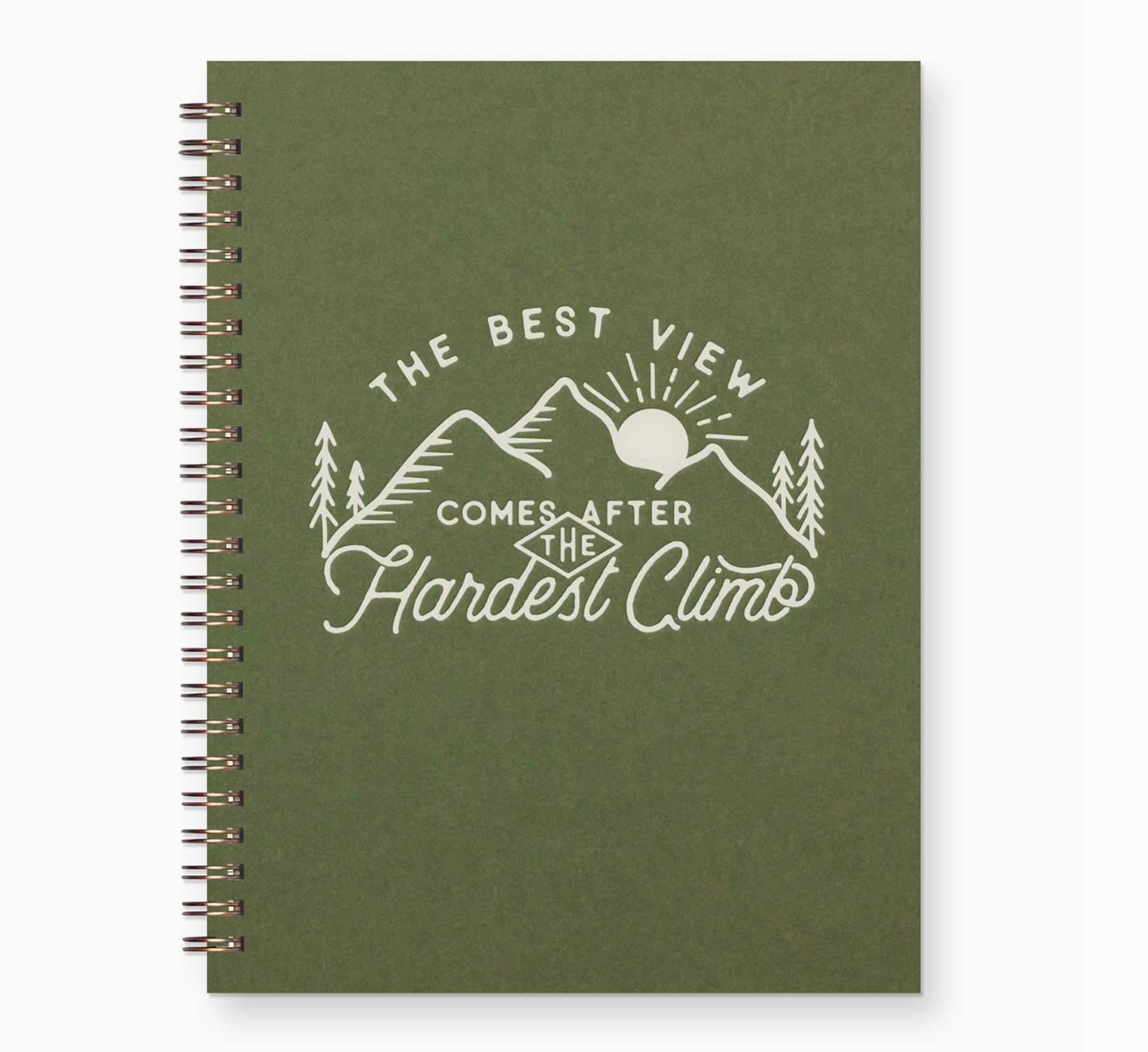 Soon-to-be your favorite go-to journal. Narrow ruled pages, lay flat and easy fold over wire binding, and thick luxuriously printed covers. As you take notes or journal, remember that the best view comes after the hardest climb.