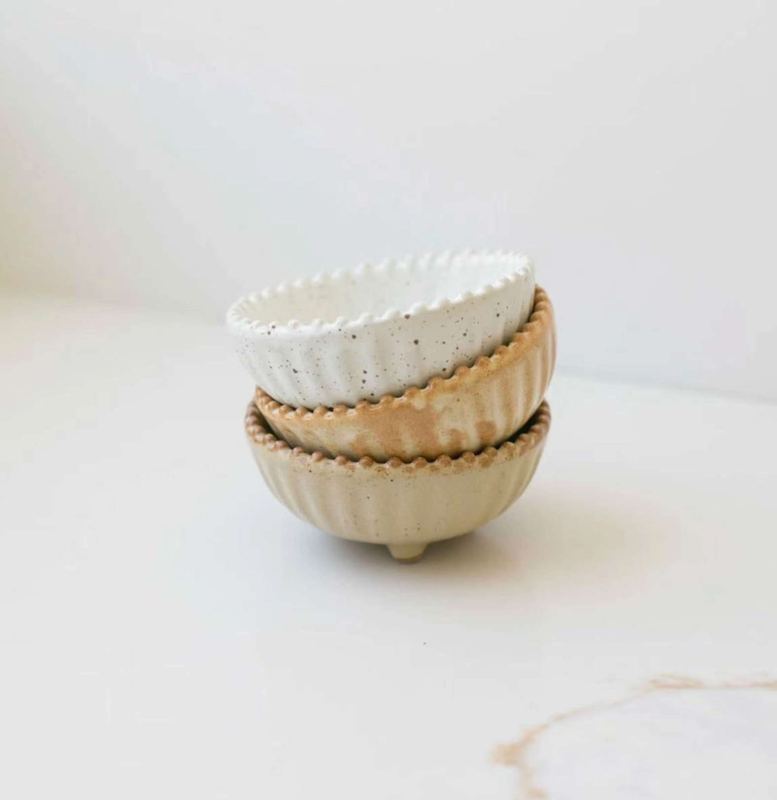 Add a touch of elegance to your kitchen with our Ruffled Edge Ceramic Pinch Bowls. These petite, handcrafted bowls feature a delicate ruffled rim and a smooth glazed finish, making them as beautiful as they are functional.