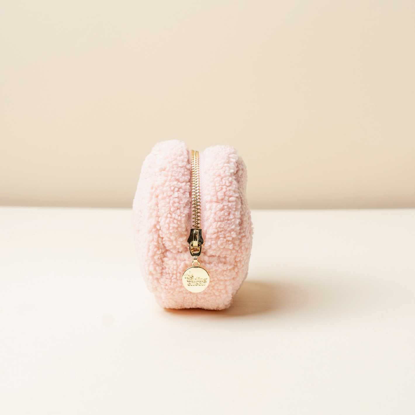 Keep your essentials safe, secure, and stylish in our lovely Teddy Pouches! Made from irresistibly soft sherpa material, these pouches feature adorable details that make them a joy to carry. With a darling, wipeable interior lining and chic gold hardware, they’re perfect for cosmetics, travel, purse organization, and so much more.